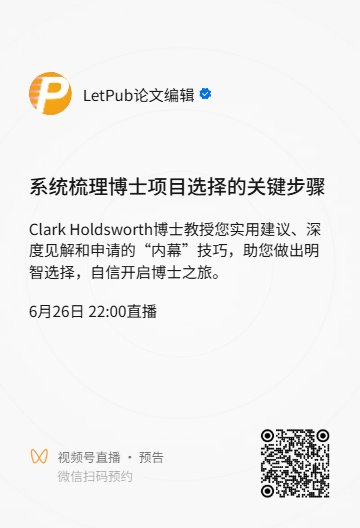 本期LetPub线上讲座,我们特别邀请与世界各国科研作者和SCI期刊进行数千次互动的美籍编辑——Clark Holdsworth博士教授您实用建议、深度见解和申请的“内幕”技巧,助您做出明智选择,自信开启博士之旅。