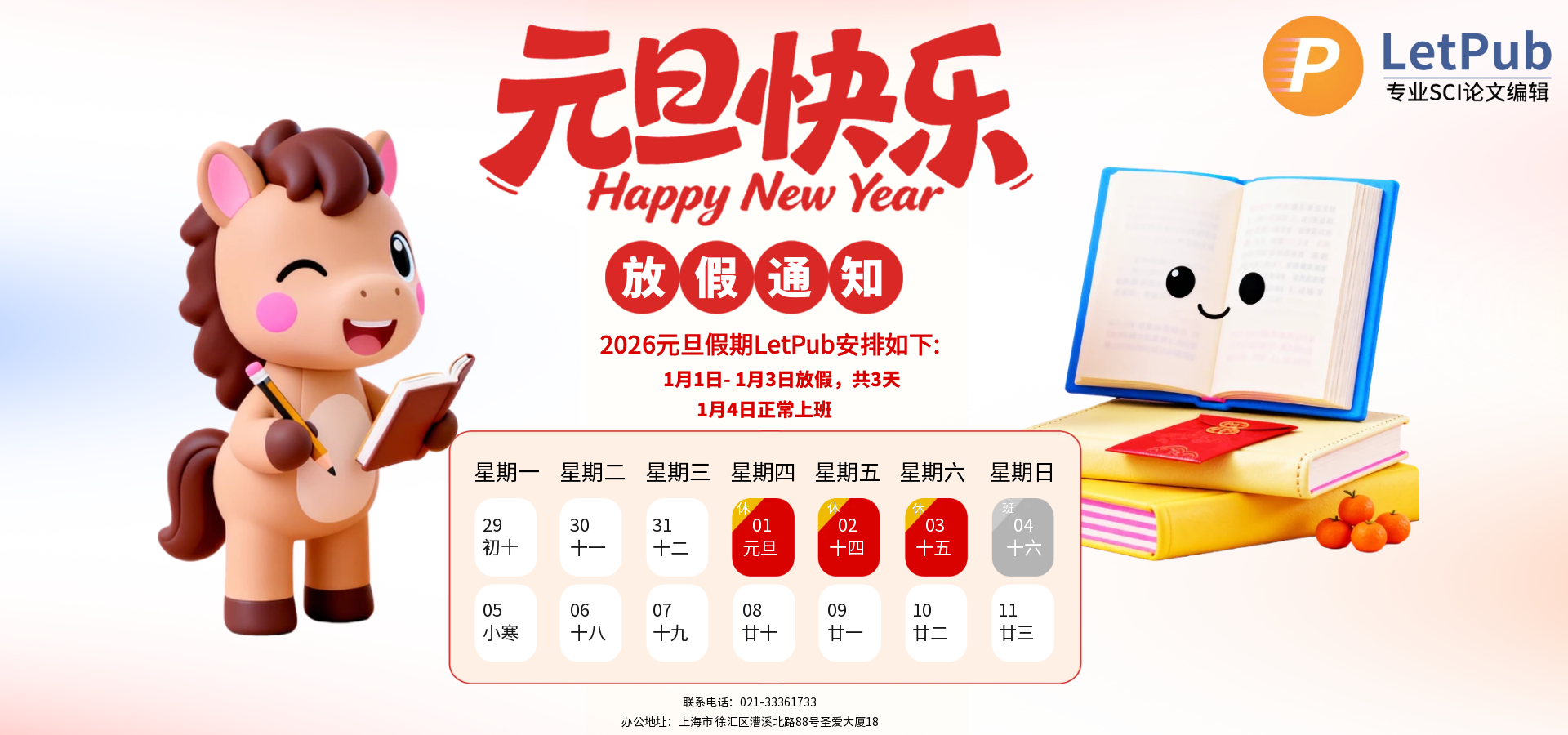 摘要:2026年元旦假期即将来临,LetPub祝您假期愉快,阖家欢乐!