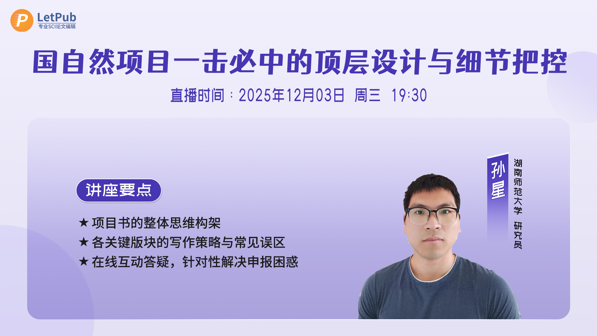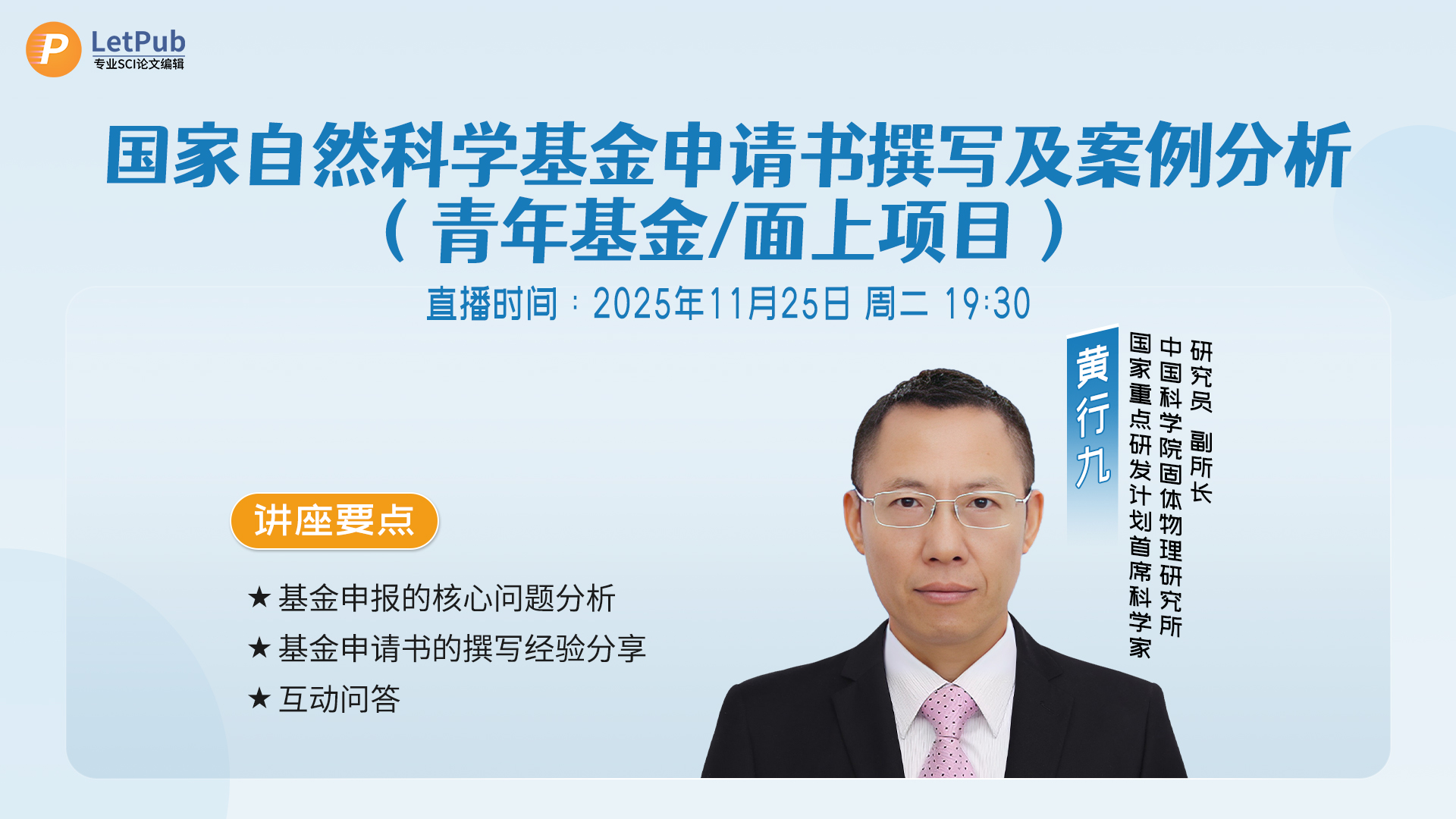 LetPub《2025国自然申请讲座系列》讲座预告 & 视频回放
