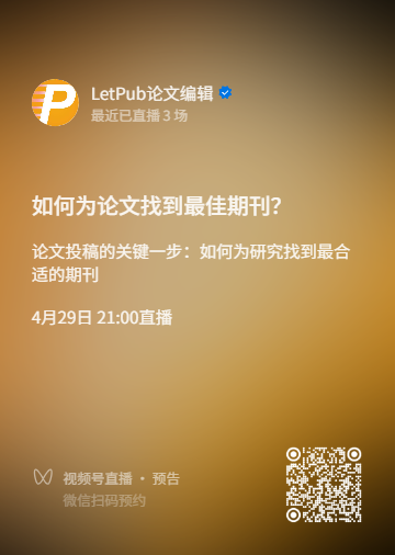 摘要:4月29日(周三)晚上9点,LetPub网络研讨会将介绍如何为您的论文选择合适的期刊。