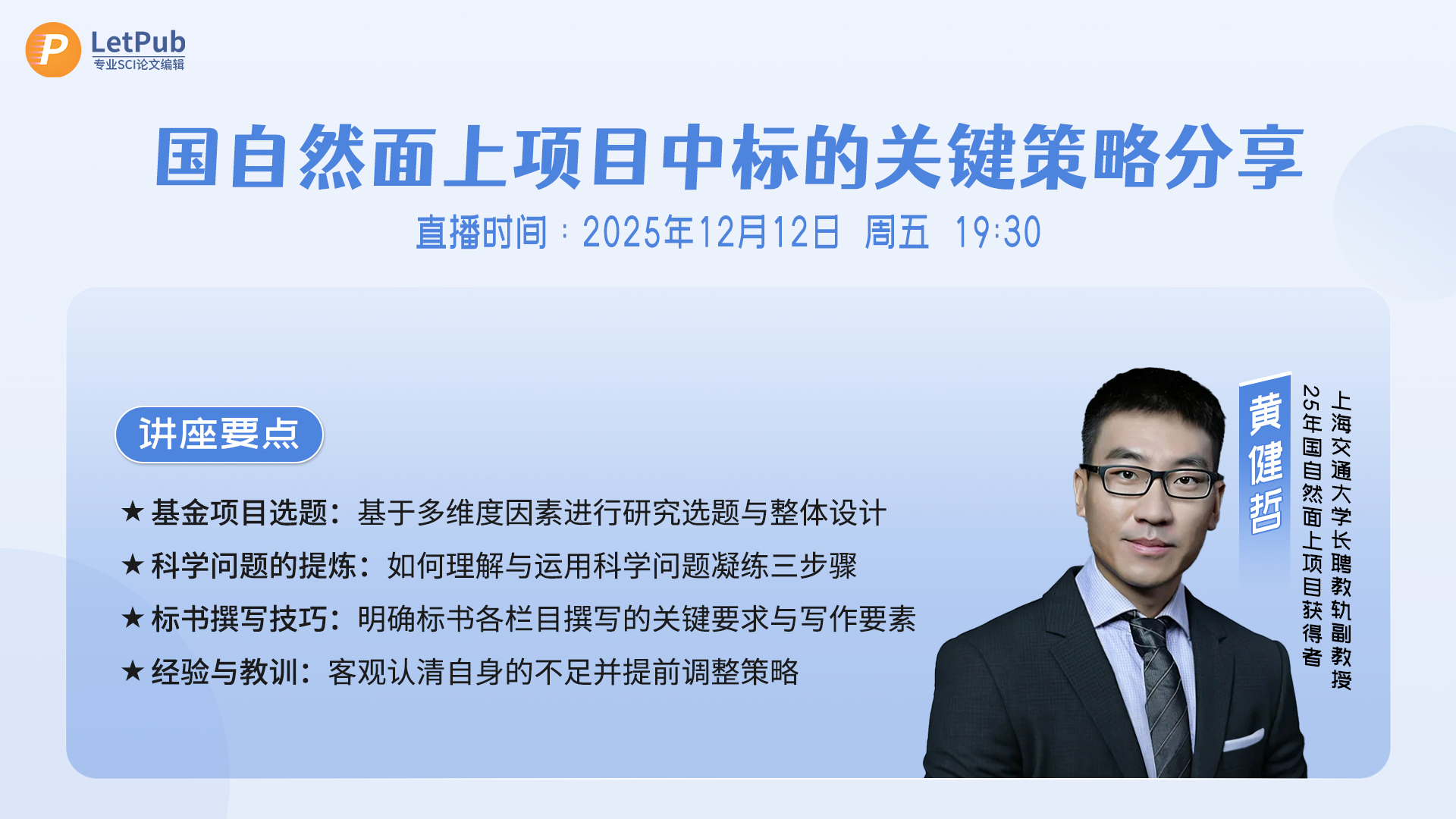 LetPub《2025国自然申请讲座系列》讲座预告 & 视频回放