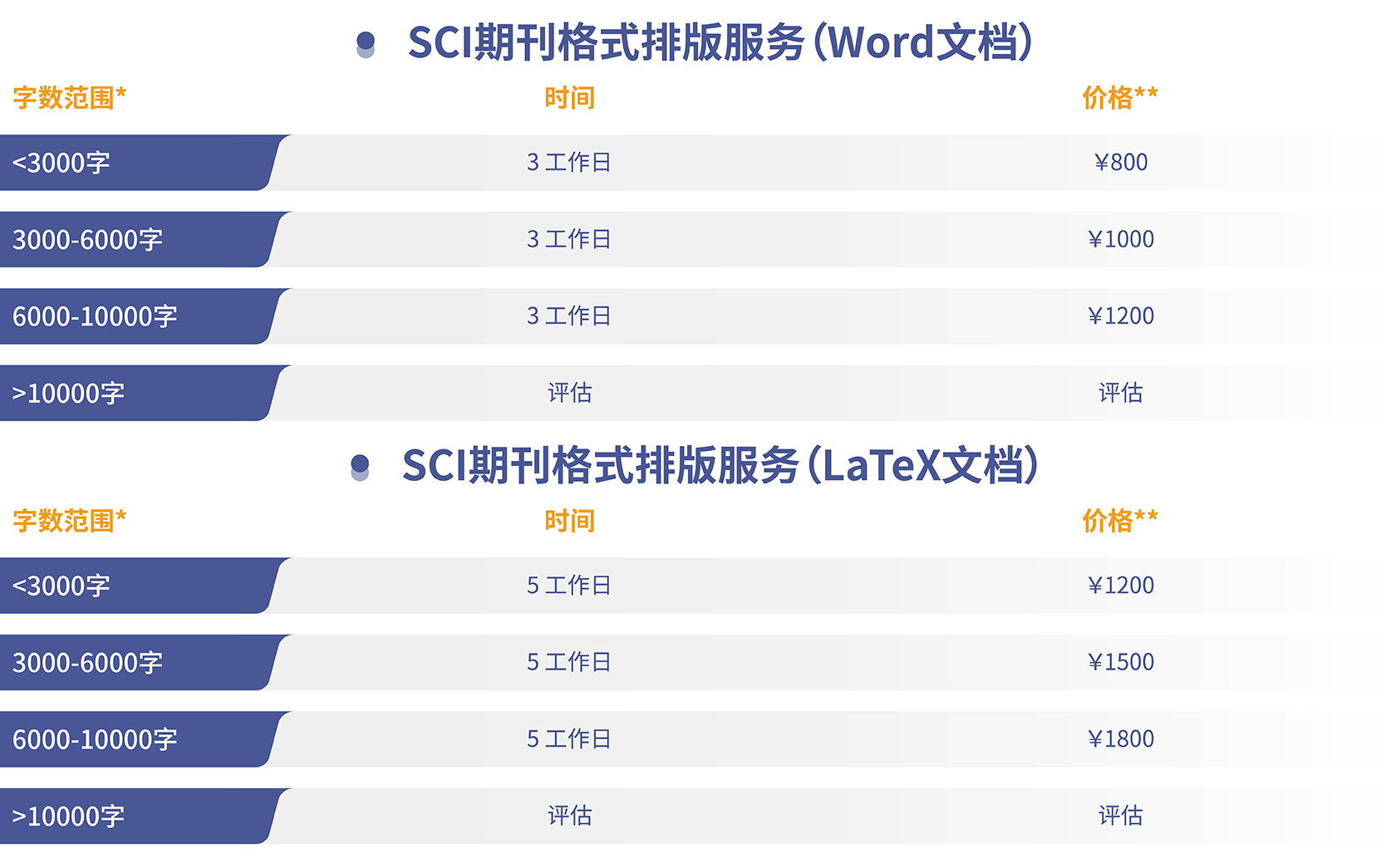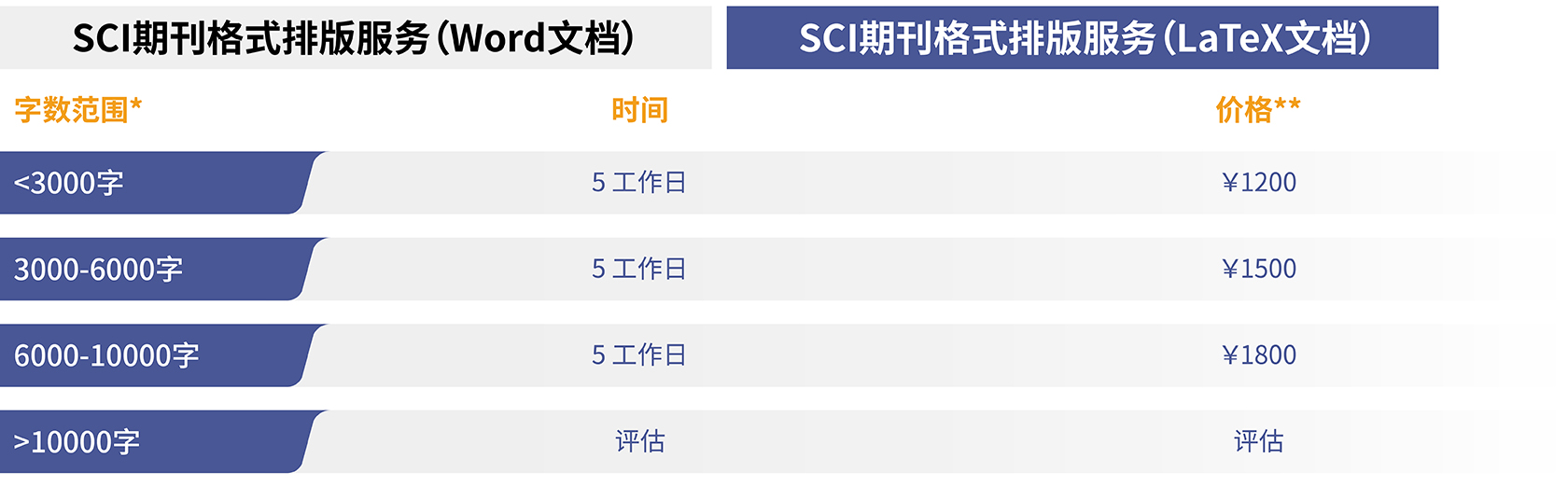 *此项服务不包含字数缩减、内容的补充、语法及拼写检查、图表制作、完整的cover letter撰写等服务,如需相关语言编辑及图表服务可选择LetPub相关服务