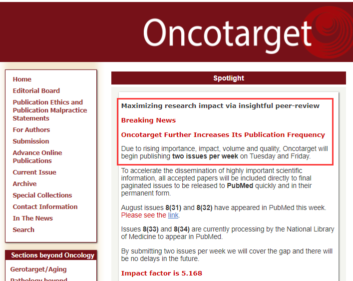 在Oncotarget上发表论文需要支付高昂的版面费,去年是每篇2850美元,从2017年2月起又继续上调至3400美元,光去年一年期刊的版面费收入就达到将近1900万美元!然而,期刊官网近期又宣布要增加出版频次,从2017年9月起Oncotarget由每周出版一期增加为两期。此次增加出版频次也许是投稿量明显增多的缘故,但也有猜测是期刊为了提高下一年度的 IF 数据,其实Oncotarget每年存在较明显的自引情况,自引率基本保持在22%以上,因此通过增加出版量来拉升 IF 也是一种可能性。由于以后每年出版的文章会越来越多,加之再次水涨船高的版面费,不免让人们对Oncotarget再次产生质疑。