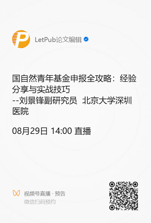 2025年国家自然科学基金项目申报在即,LetPub将继续推出《2025国家自然科学基金申报攻略》系列讲座。8月29日周四下午14:00,我们荣幸地邀请北京大学深圳医院/中国科学院深圳先进技术研究院的刘景锋副研究员,为我们带来《国自然基金项目申报经验分享》的主题讲座。刘老师将深入分析申报过程中常见的问题,并提供详细的选题和撰写思路。
